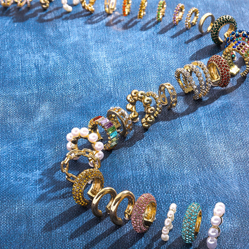 2021 New Fashion Pearl Ear Cuff Bohemia Stackable C Shaped CZ Rhinestone Small Earcuffs Clip Earrings for Women Wedding Jewelry