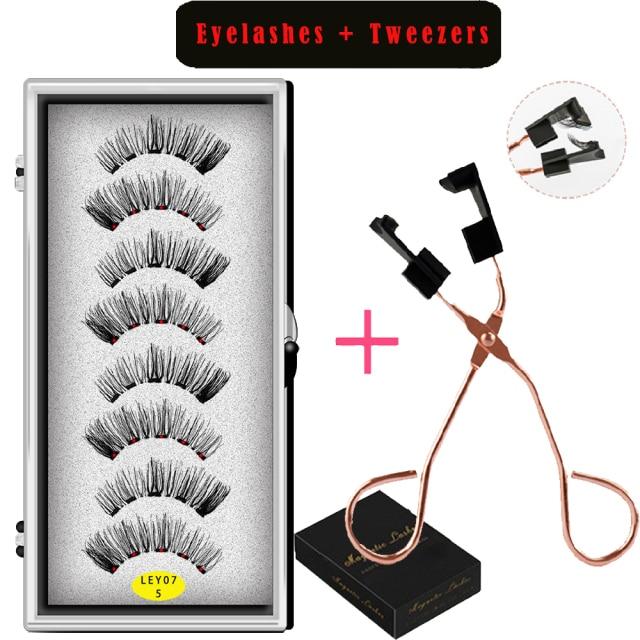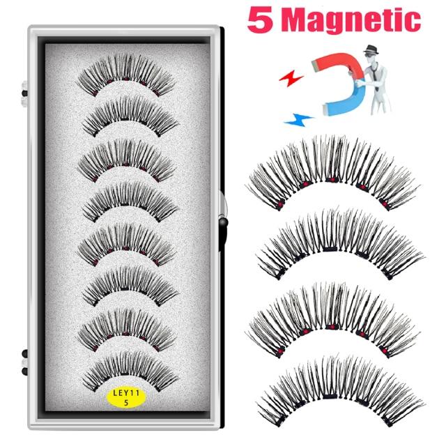 LEKOFO 8PCS 5 Magnets 3D Magnetic False Eyelashes Handmade Artificial Faux Cils Magnetic Natural Mink Eyelashes with Tweezers