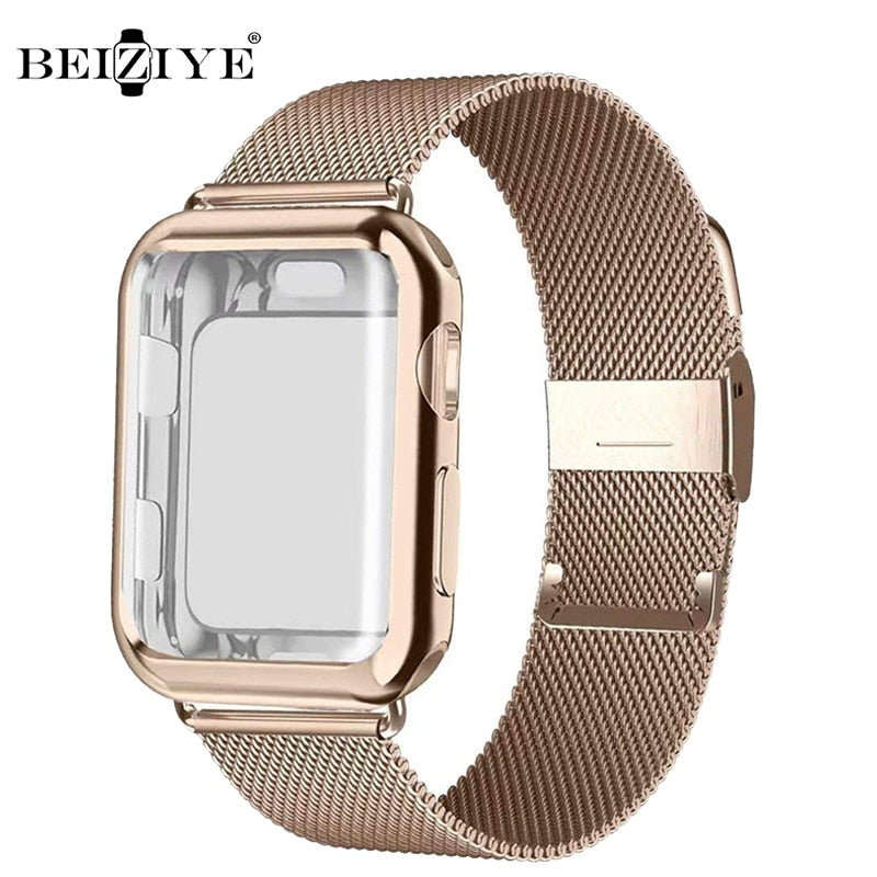 Milanese Watch Band + Case For Apple Watch Series 6 SE 5 4 40mm 44mm 38mm 42mm Stainless Steel Strap Wrist Bracelet for iwatch