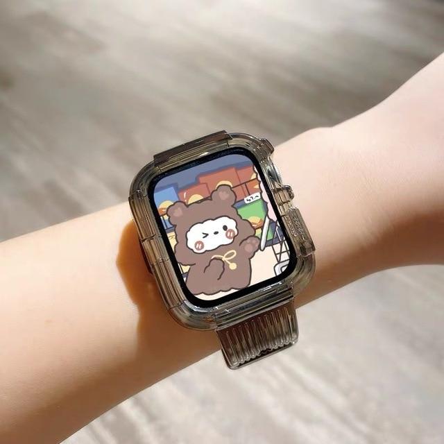 Newest Clear Band + Case for Apple Watch Series 7 6 SE 5 4 44mm 42mmTransparent for iwatch Strap 3 2 1 38mm 40mm Plastic Strap